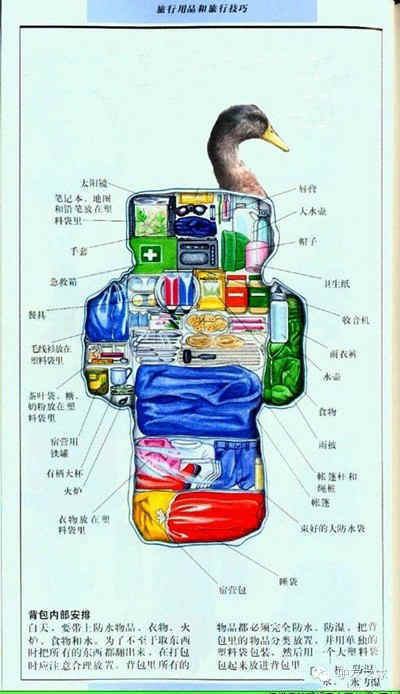 首先要了解自己的装备和背包的特点。动动脑筋,仔细想想就能发现,其实装好一个既好用又漂亮的背包并不困难,怎么才能在有的空间内,以最佳方式储存下你所携带的全部装备,才是装包过程中最大的乐趣。