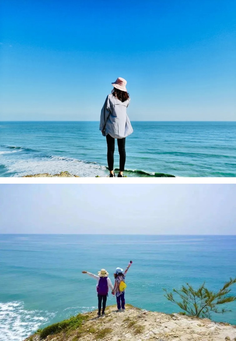 徒步穿越途中,需要翻过一些小山坡,可以在山腰和山顶眺望,大海的蔚蓝和壮阔尽收眼底。