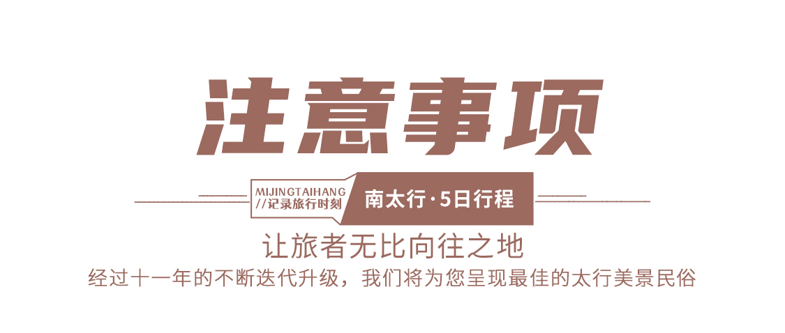 装备:为响应环保号召,景区农家不配一次性用品,请大家自备洗漱用品哦;