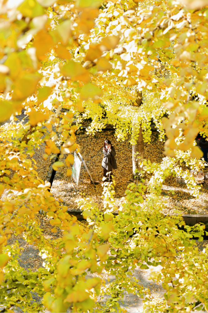 09:00 乘车前往帽子峰林场,换成景区环保车进入银杏大道,依次拍摄;