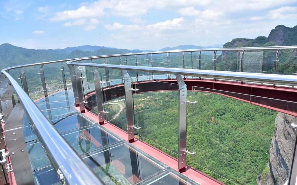 曲折的玻璃栈道像是同一条银带蜿蜒在深山中