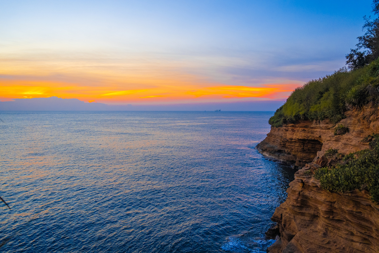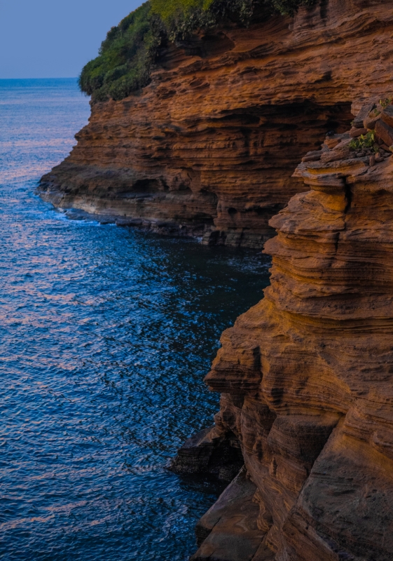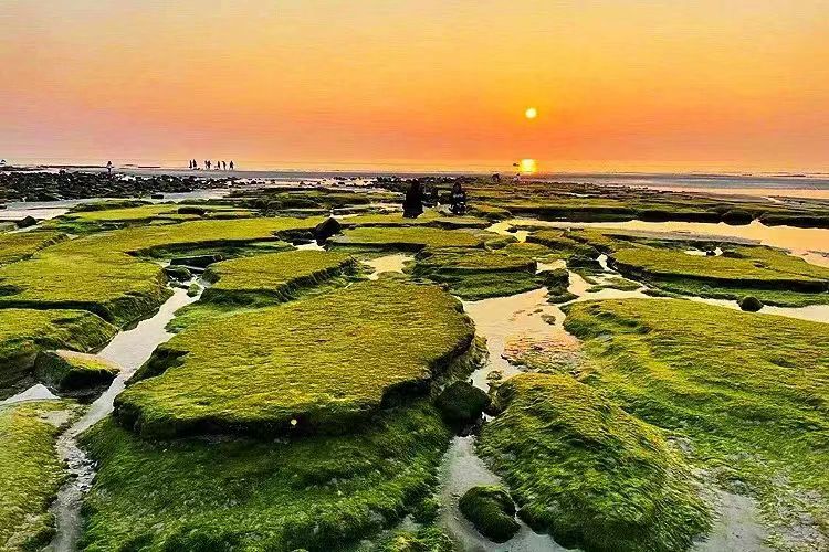 06:00 拍摄完五彩滩日出重头戏后,趁着阳光正好,自由拍摄耸立海蚀崖崖面,以及阳光照射下呈现五彩的海蚀平台,在青苔,以及海洋衬托下的独特美景;