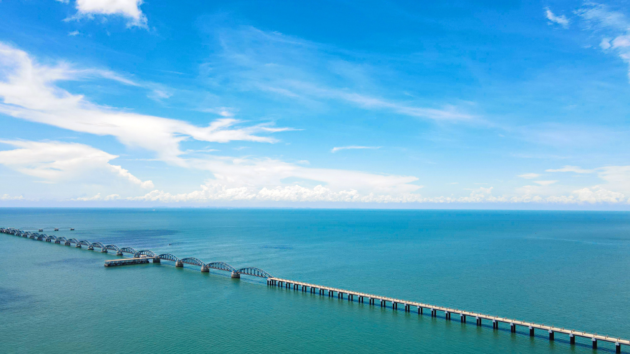 16:30 集中出发蓝桥沙滩,站在岸边儿,一座蓝色的大桥伸向大海,此桥的蓝色外貌备受青睐,也因此称之为“蓝桥”,成为了一个打卡点和摄影胜地。