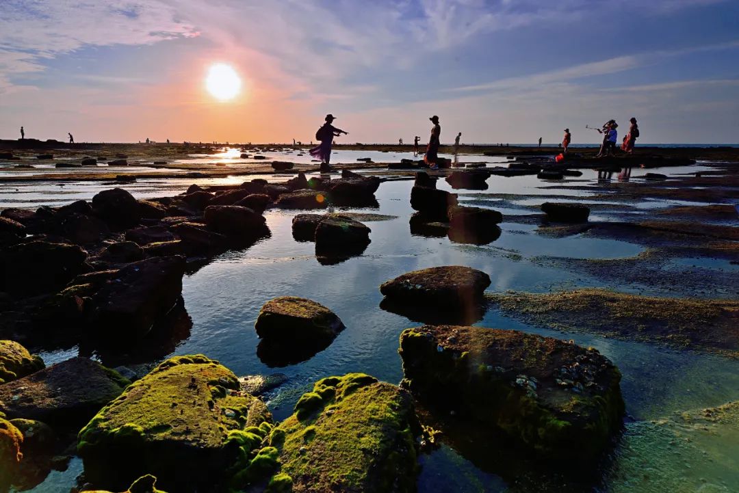 17:00 由领队带大家到石螺口海边活动,看日落,迷人日落晚霞透出浪漫气息;