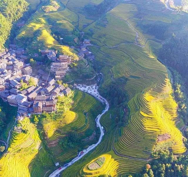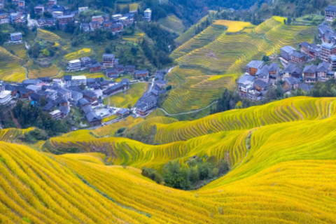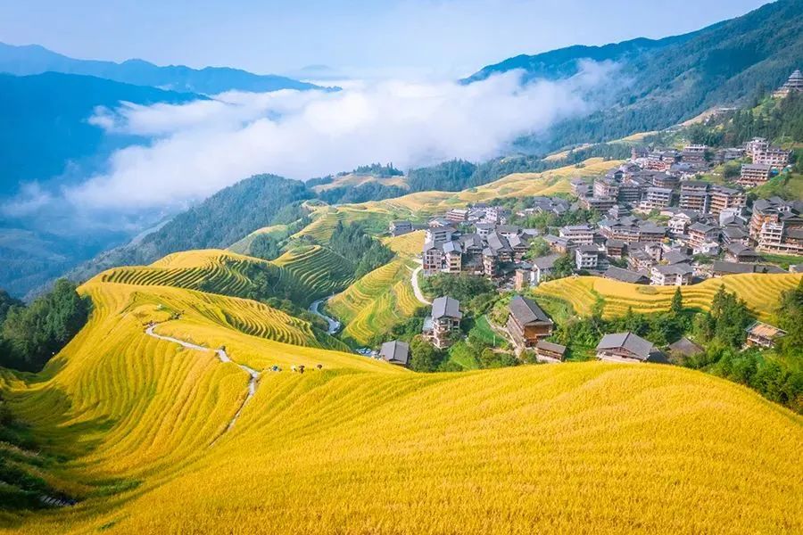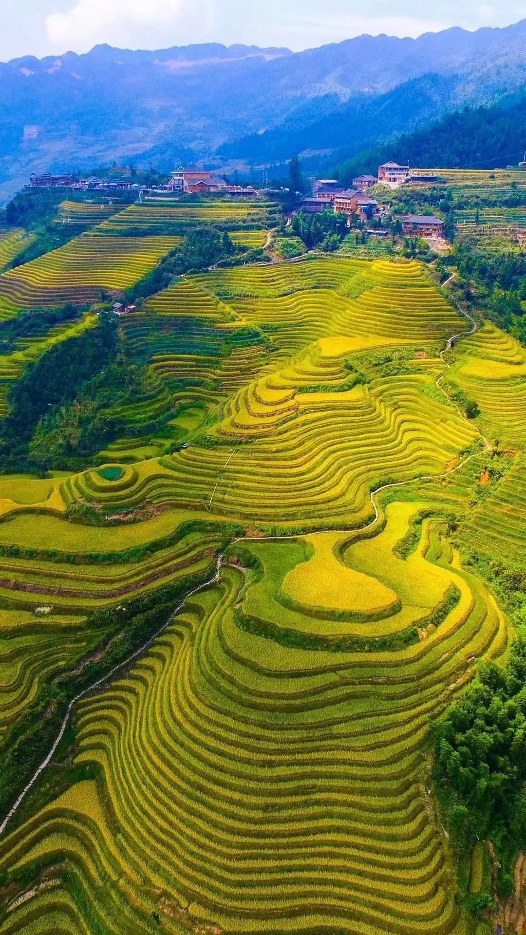 秋天的梯田金得灿烂,是最佳赏玩时间。时下正值秋季,丰收季节的龙脊梯田已逐渐变黄,一圈圈渐变的色彩涟漪般得在山间呈现,吸引了无数的摄影爱好者前往观看。