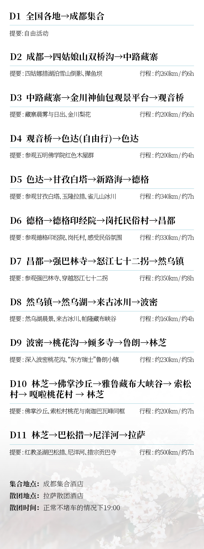 5、餐饮:全程含11早,正餐自理,由于途中就餐方便,队员口味不一,建议自理或者AA,也可以自备路餐零食。