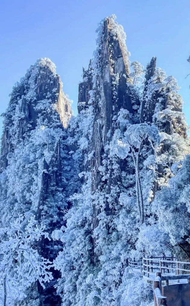 被雾凇装扮后的莽山五指峰配得上所有美好词汇