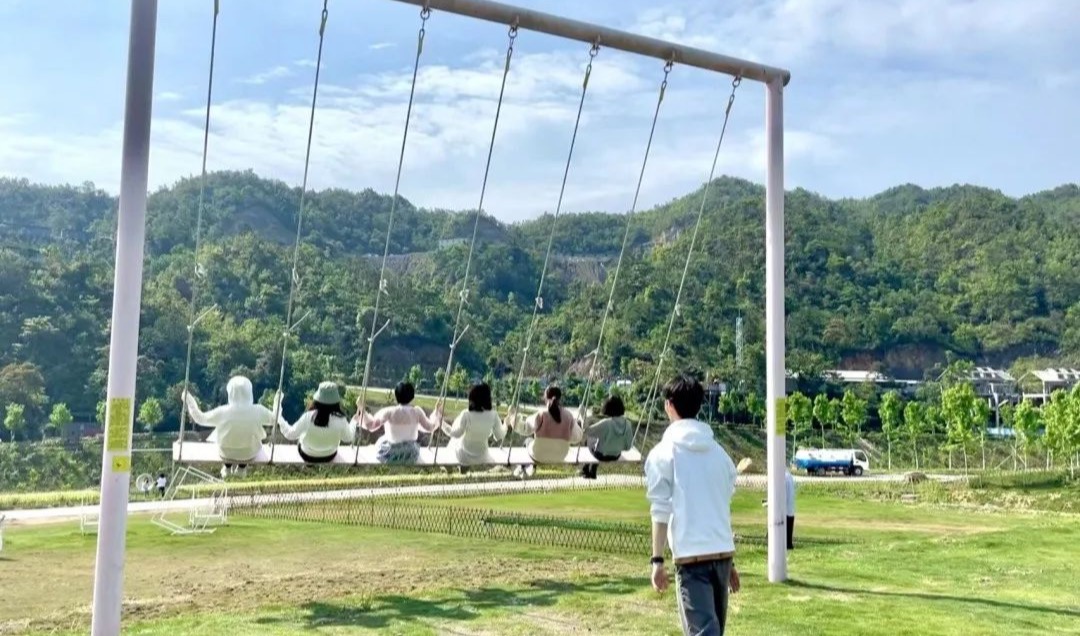魔法森林里还可以荡秋千、跳蹦床、在大草坪上自由的奔跑