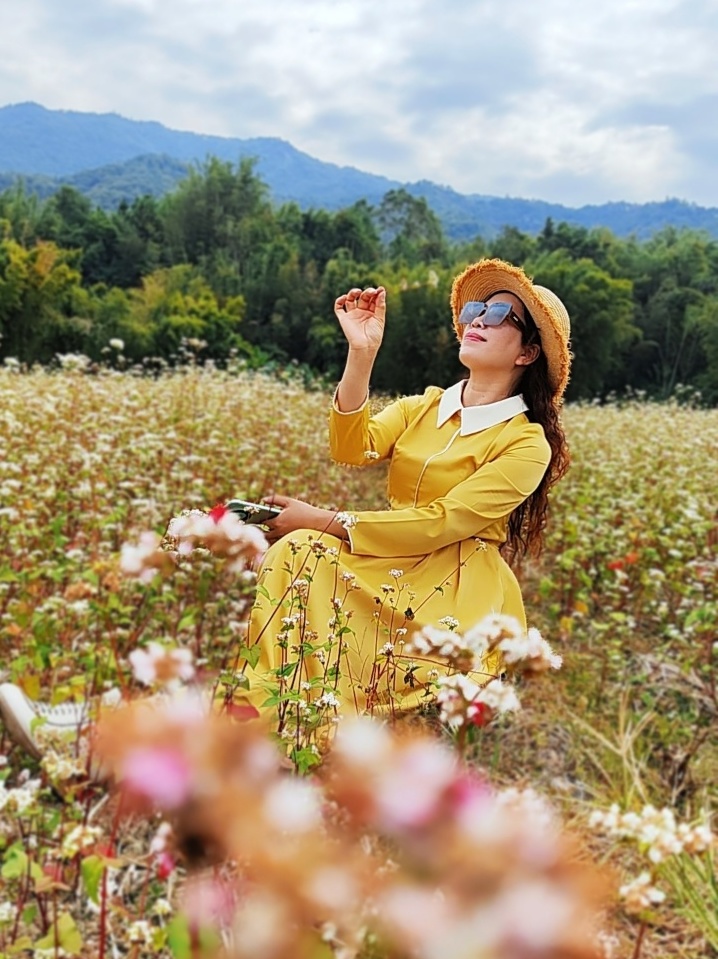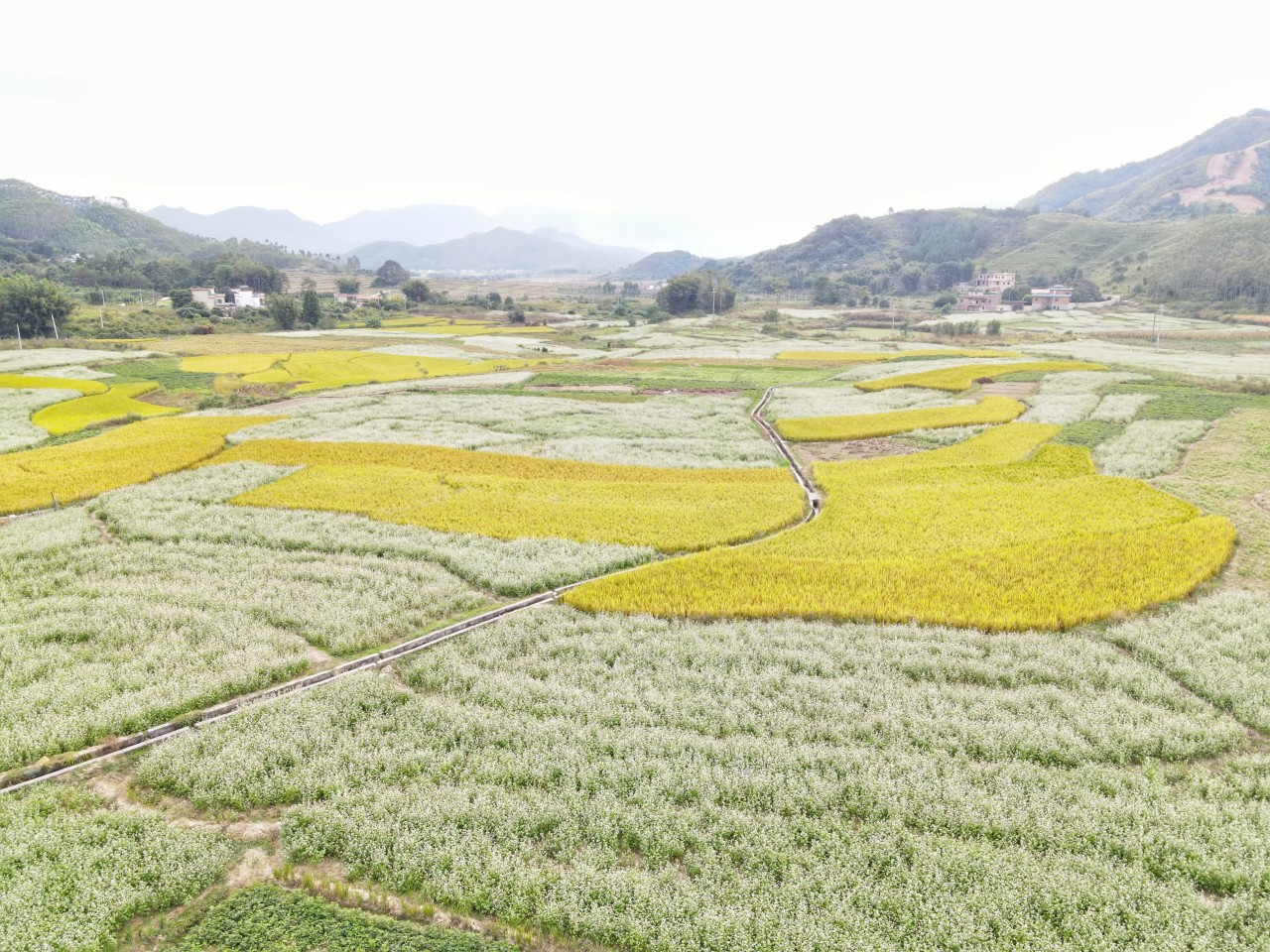 荞麦花附近,还有大片的金色稻田,美不胜收!