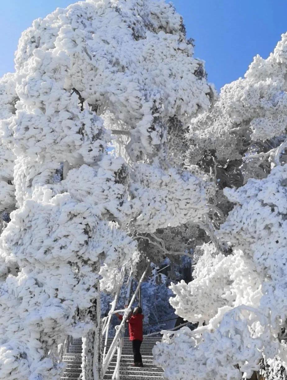 阶梯、栈道上也铺满冰霜,仿佛通往天上人间。