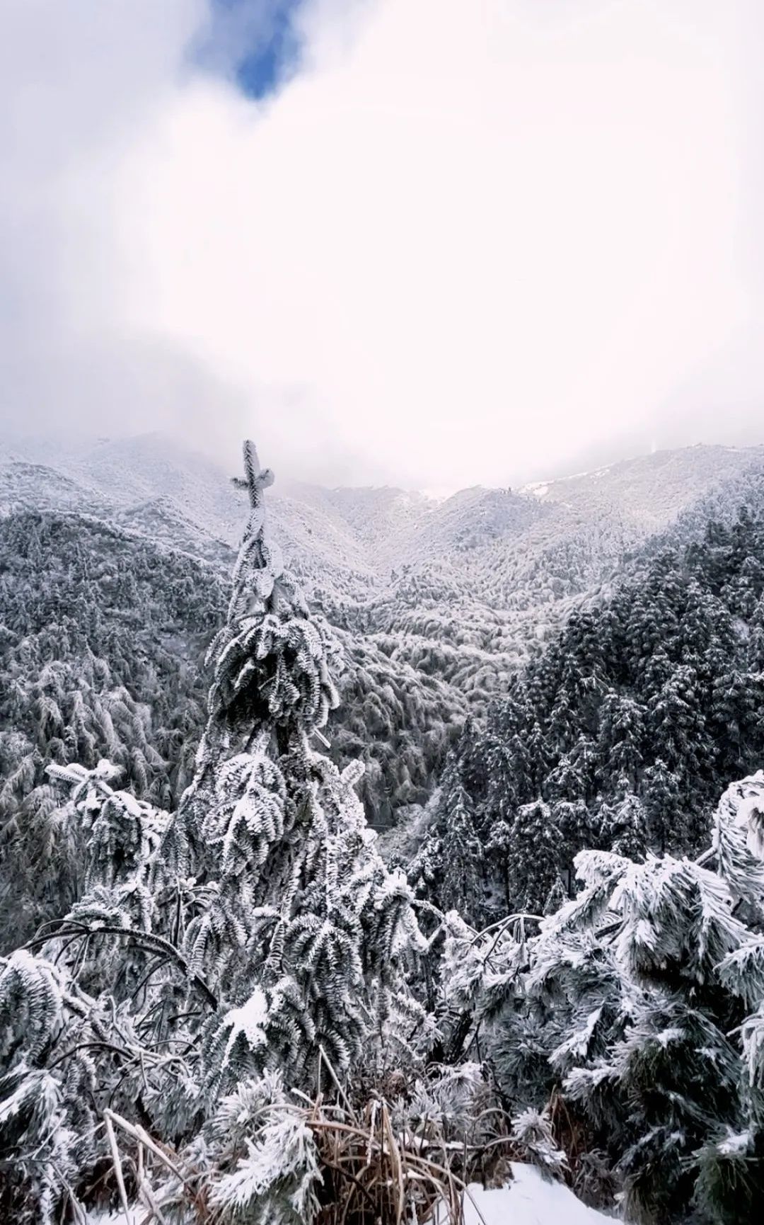 山巅之上,茫茫一片,万物银装素裹。