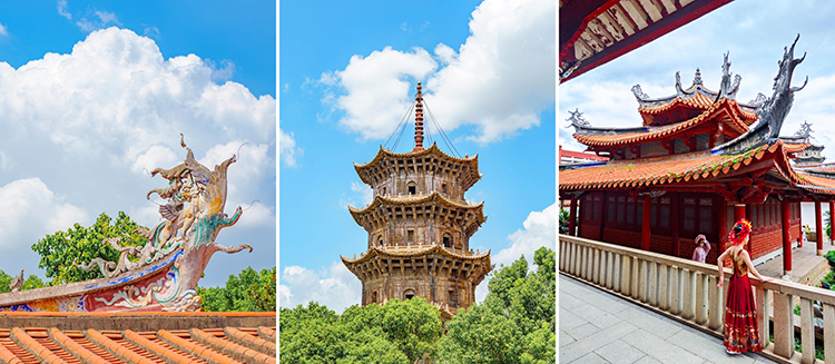 有福建省内规模最大的佛教寺院开元寺、游戏《黑神话·悟空》场景东西双塔、泉州最古的商业街西街、香火最旺的关岳庙、祭祀海神妈祖的天后宫、观看世界级非物质文化遗产表演木偶戏……