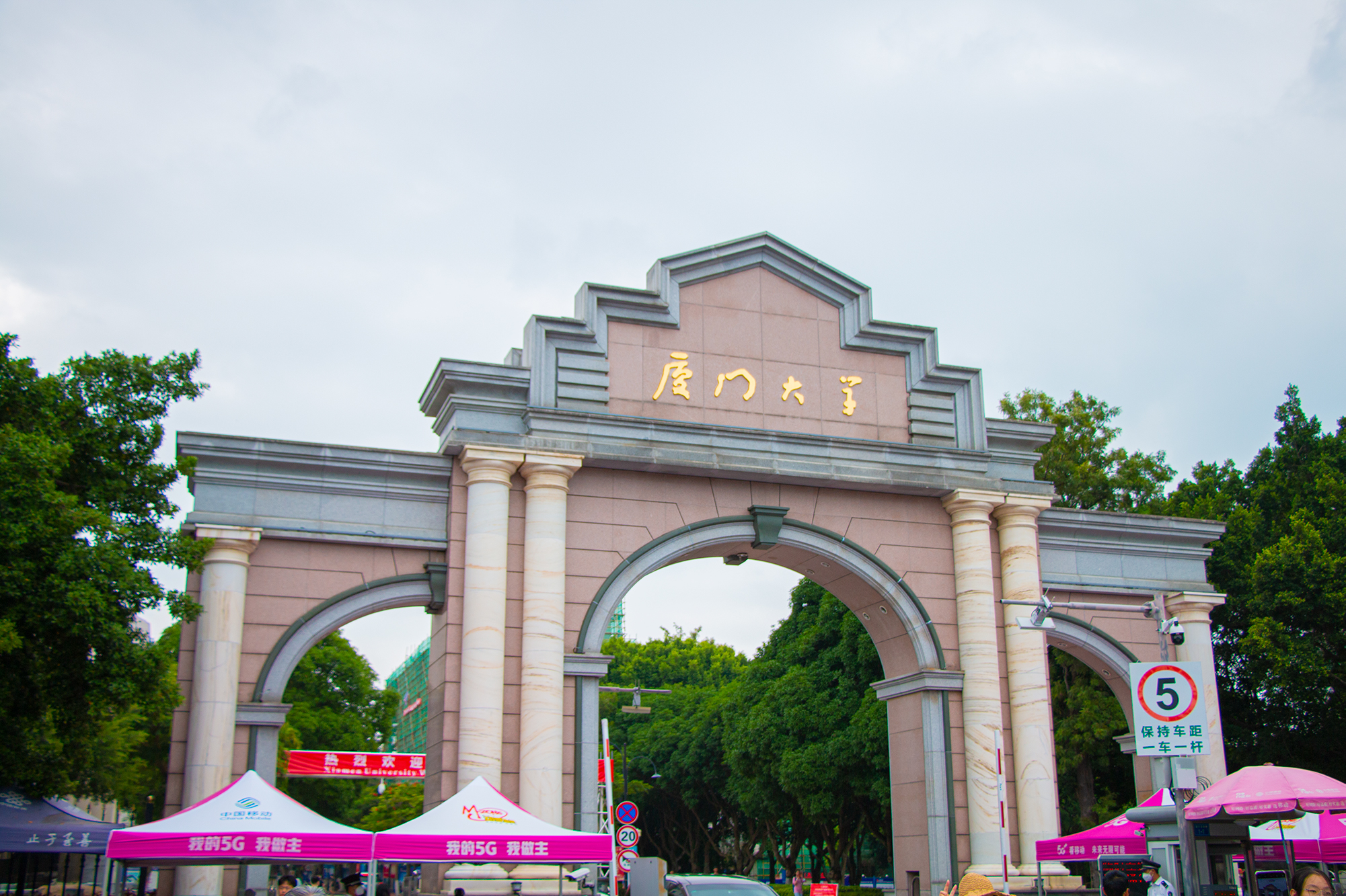 参观南普陀寺之前,顺便与厦门大学校门来一张合影。