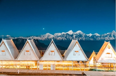 1、牛背山住宿可升级球形大帐篷独卫,如帐篷酒店满房的情况,我们则安排至:牛背山星铂酒店box房型,标间独卫。