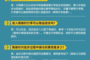 2. 餐饮:全程用餐自理,驴友可一起AA,向导会根据需求给予推荐(人均每餐40元左右);