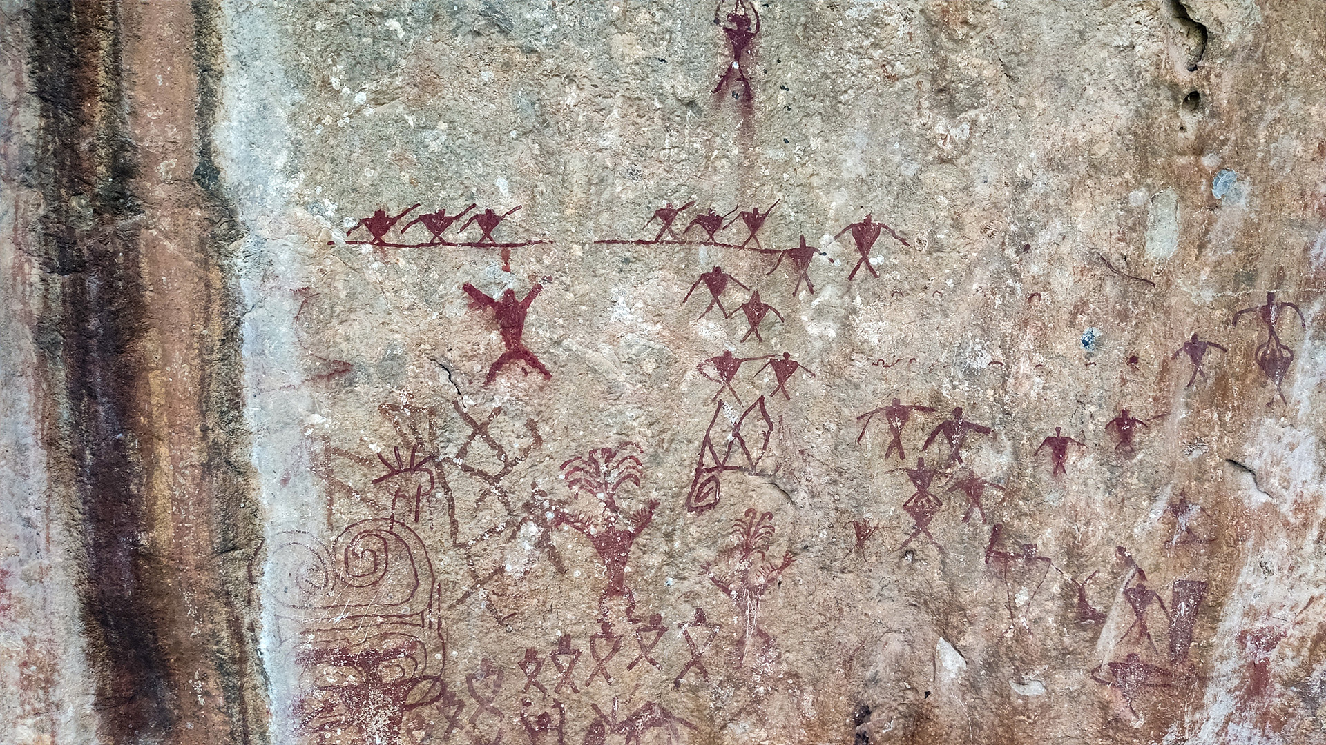 之后,来到【沧源崖画】,是我国目前发现的最古老的崖画之一,崖画主要是狩猎、采集等生产活动及娱神等宗教活动的场面,还有战争凯旋图,手持兵器、驱赶猪羊胜利而归的人们。我们在这里与3000多年前佤族先民来一次对话。