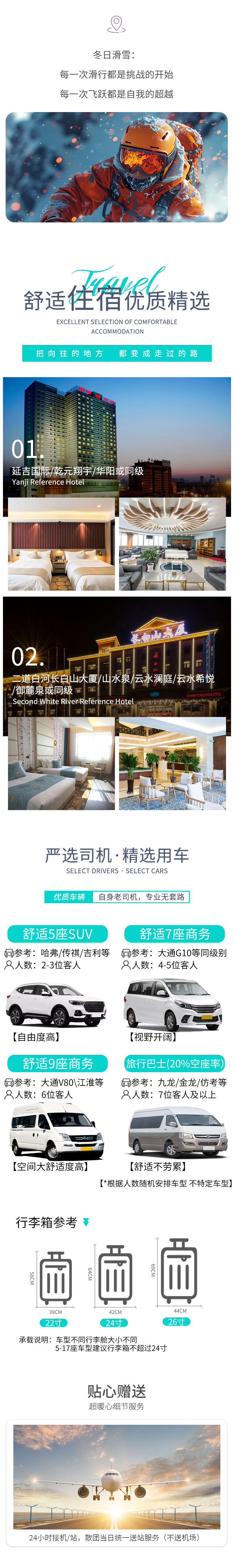 4、门票:雪岭门票、长白山门票+往返环保车+区间车+倒站车、雪地漂流门票、民俗园门票