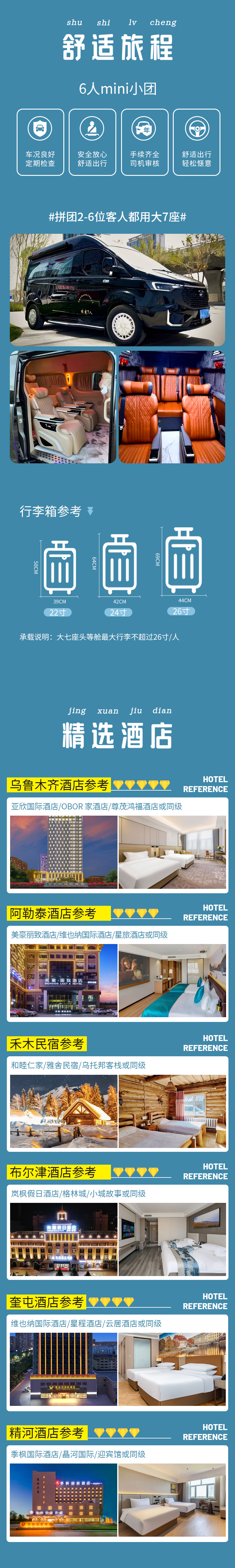 3、用车:拼团2-6客人用大7座商务车(小团副驾驶及前后座位置需要轮流乘坐,望悉知),私家团2-3人用suv,4-5人用7座商务,6人用大七座商务车;