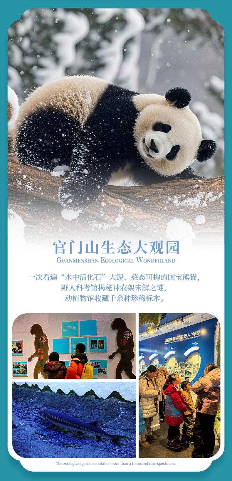 在官门山,还可以看到国宝级动物-娃娃鱼“大鲵”、大熊猫。