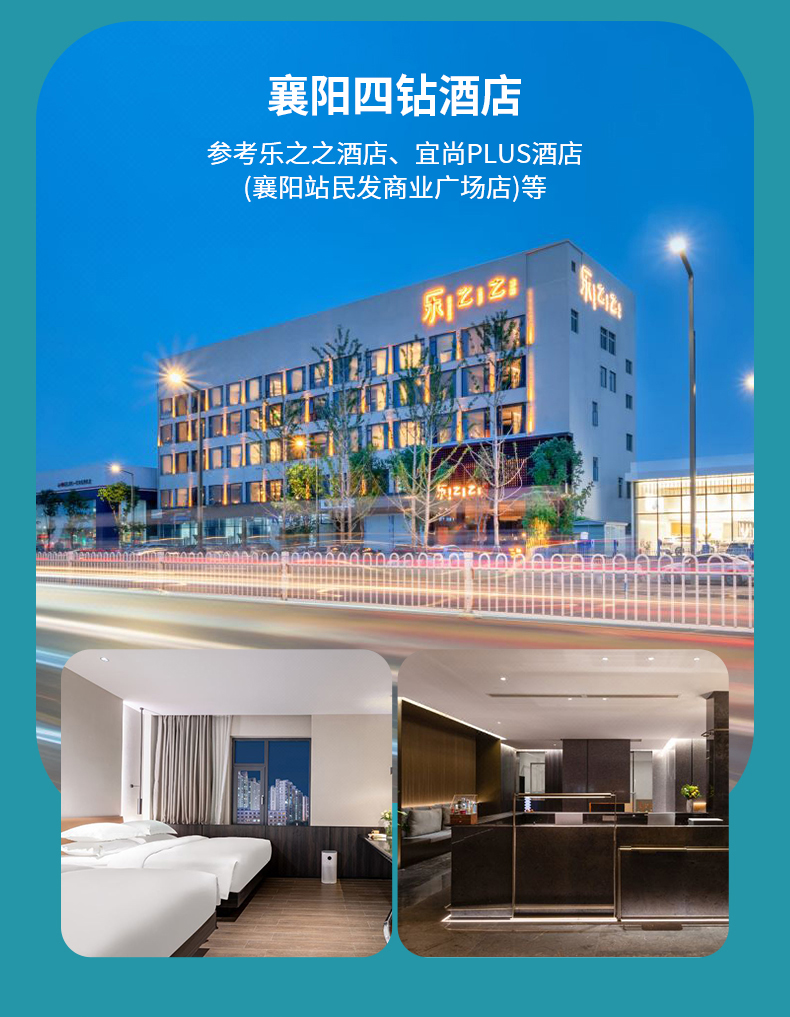 住宿:襄阳四钻酒店,参考乐之之酒店、宜尚Plus酒店等;
