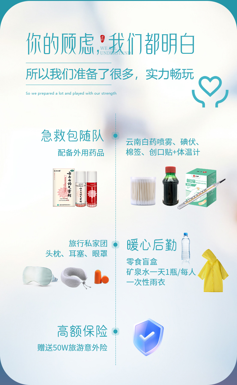 (3)特别声明:岭南对以及驾驶员因没有医疗资质,随车只提供外敷药物,无任何内服药品,请提前备足适合自己的药品。