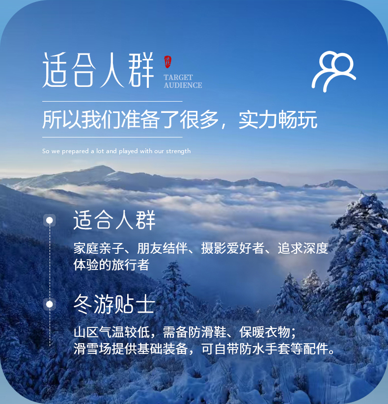 3.个性化消费,比如神农架滑雪雪服、头盔、手套等;我们滑雪包含的是双板或单板全天滑雪,如果需要中途换板,多出来费用自行支付;