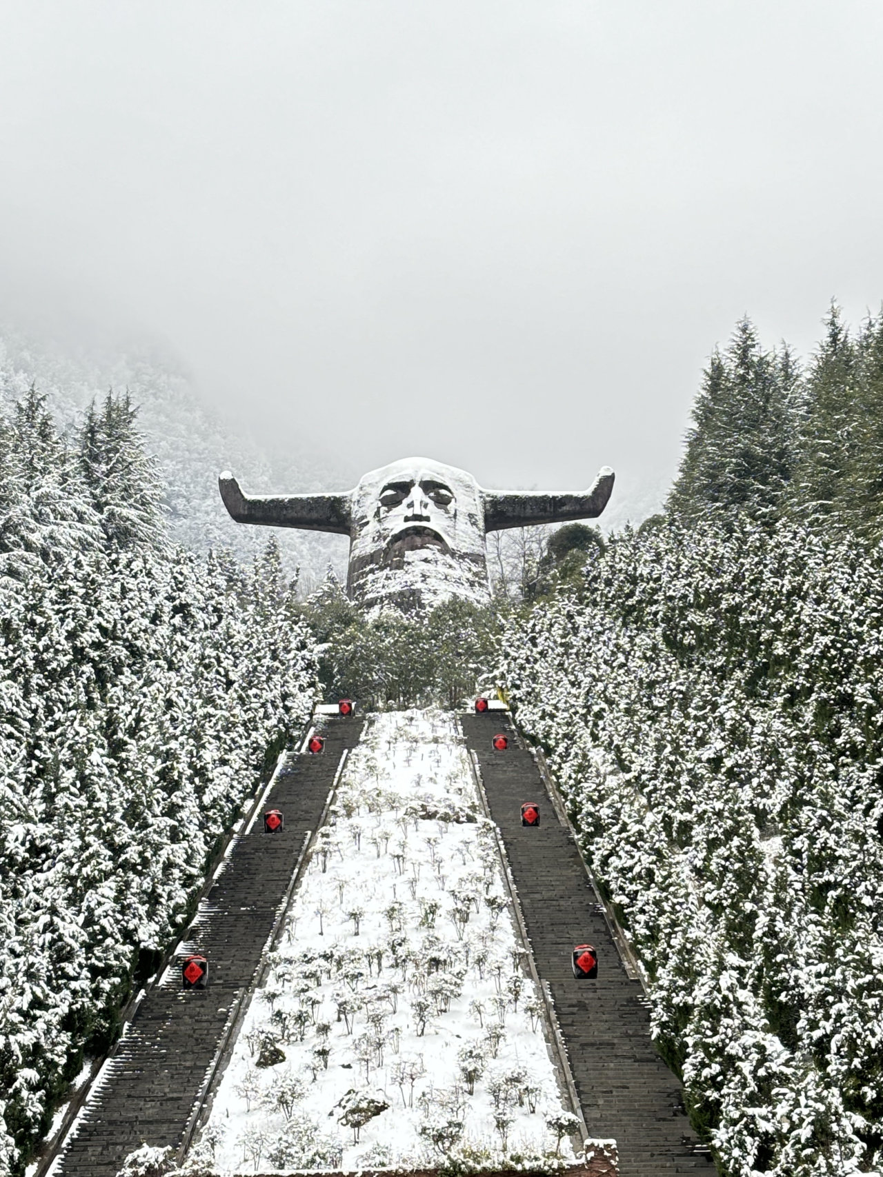 当雪花纷纷扬扬地飘落,神农坛仿佛披上了一层洁白的银装。古老的神农雕像在冰雪的映衬下,更显庄严肃穆。这里的每一寸土地都散发着神秘的气息,仿佛在诉说着远古的故事。