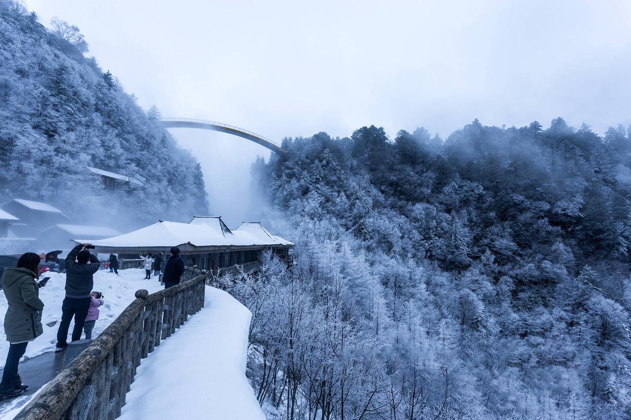 冬天,这里则是银装素裹,站在彩虹桥上,远眺神农架这片区域。