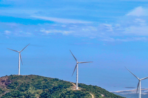 风车的巨大身影与旖旎的自然景观融为一体