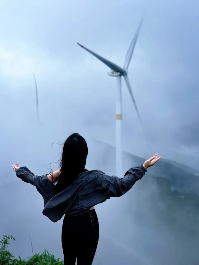 还能让你近距离接触一排排高大的风车