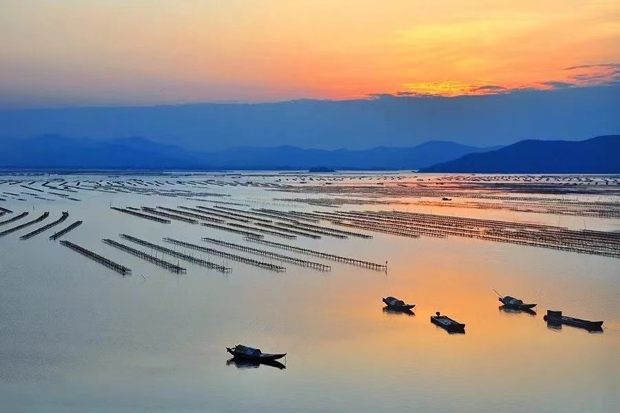 17:00 集合乘车前往盐洲岛拍摄金色落日,到达白沙村,可以跟随领队前往民宿楼顶(自费5元/人),给大家观赏红树林和白鹭的最佳观赏点,然后统一过去滩涂欣赏日落美景(也可以自费游玩出海捕鱼,如果时间太晚或者游玩出海捕鱼人数太多则取消出海捕鱼项目);