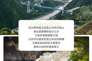 早餐后,收拾好行李8:00集合出发,乘车前往中途客栈,开启最后一条的徒步,徒步时间大约3小时左右(6公里)到达纳西雅阁乘车前往虎跳峡景区游览1小时,回程到达丽江散团。