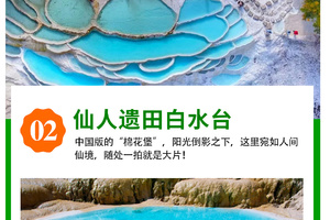 早餐后7点40分左右出发,游玩【白水台】,白水台远处看去,青山掩映中的白水台造型真的就像层层梯田,在阳光照耀下,又仿若摄影作品中凝固的瀑布一般。一脚踏在白色的石阶上,说不出的泌凉畅快。阳光倒影之下,这里宛如人间仙境,随处一拍就是大片!