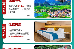 3.【住宿升级】:全程3晚四钻酒店+3晚核心景区住宿领衔,住“进”坝美+普者黑+建水古城景区里面,更深度的融入景点;多年专业队伍实地考察,只为提供给您一次舒心的旅程!