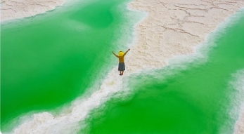 08 : 00早餐后出发,我们先抵达【大柴旦翡翠湖】,这里之前是少有人知的天空秘境,网红必打卡之地。晶莹剔透的湖水由于富含各种元素,在阳光的照射下呈现出多种绚丽的颜色。盐湖映衬着远处若隐若现的雪山,相得益彰。