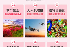 【航拍体验】:每团人数达到11人或以上,则特别安排领队带无人机航拍,航拍分享沿途视频或风景图片,带来不一样的旅行体验;