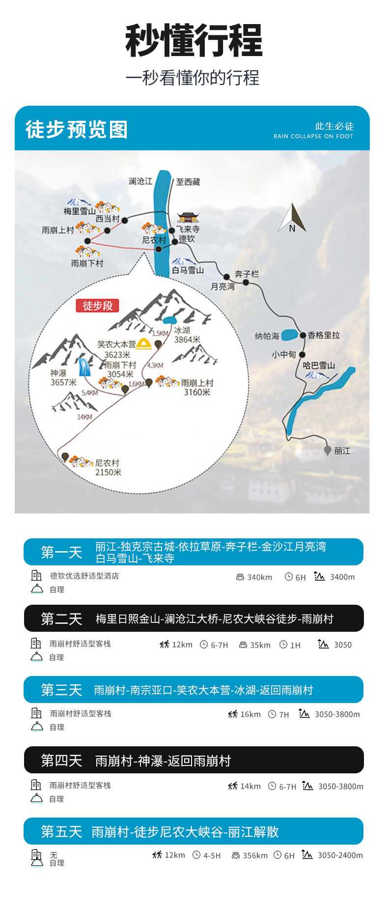 雨崩村→徒步尼农大峡谷→丽江解散