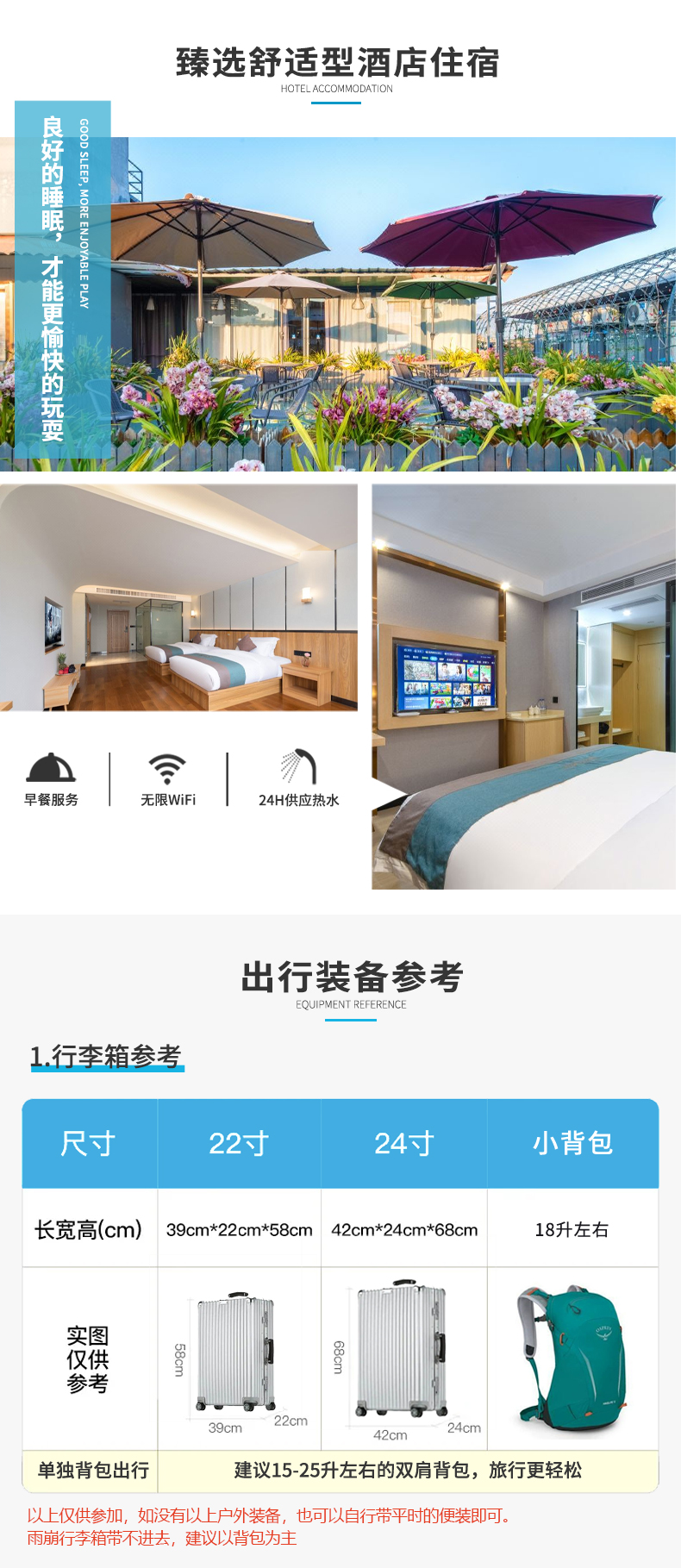 箱包:全程徒步,禁止携带行李箱。
