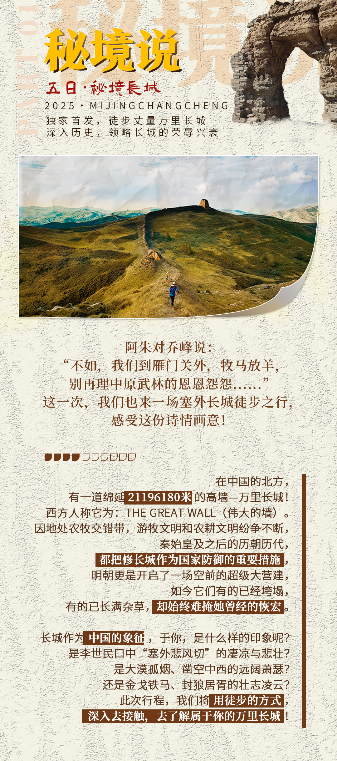 我们走在边墙上,望向墩台,一个接一个,向远方延伸过去,弯弯延延的边墙映入眼帘,仿佛停到他们无声倾诉着遥远的过去,见证着悲壮的历史与现实。