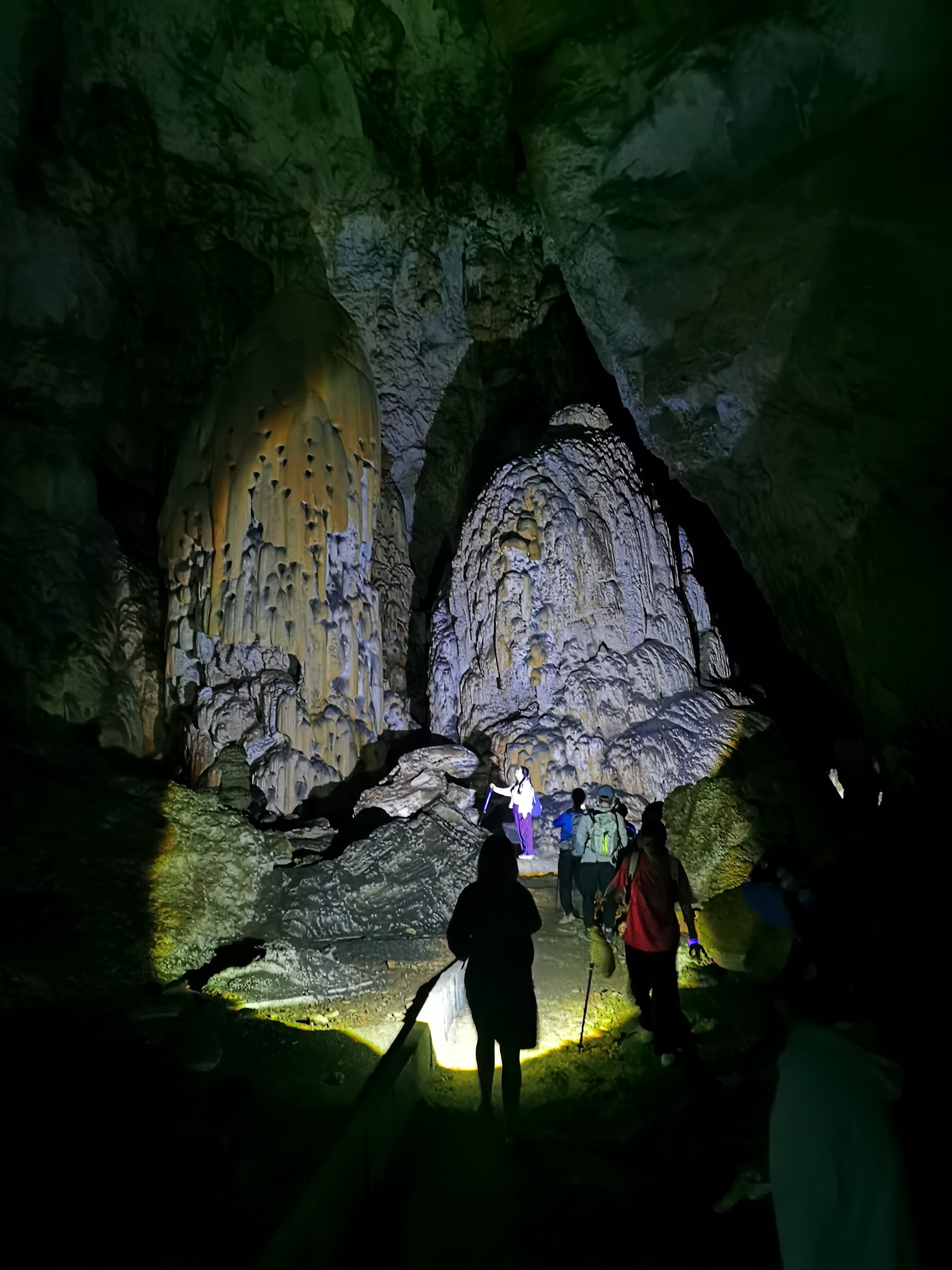 07:30徒步地心之旅。5小时的熊家俩洞连穿徒步穿越,线路很成熟,地心之旅徒步大会精华段就这里。这个季节,最合适早起登山,先进行一小段的登山,今天的午餐是路餐,只能是在洞里吃,带上温水,还有干粮,一起探索神奇的天坑溶洞世界吧