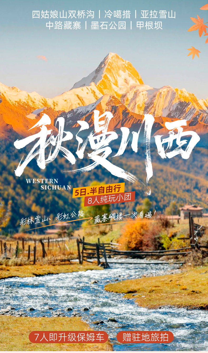 四姑娘山双桥沟+冷嘎措+中路藏寨+亚拉雪山+墨石公园+甲根坝5日金秋漫游