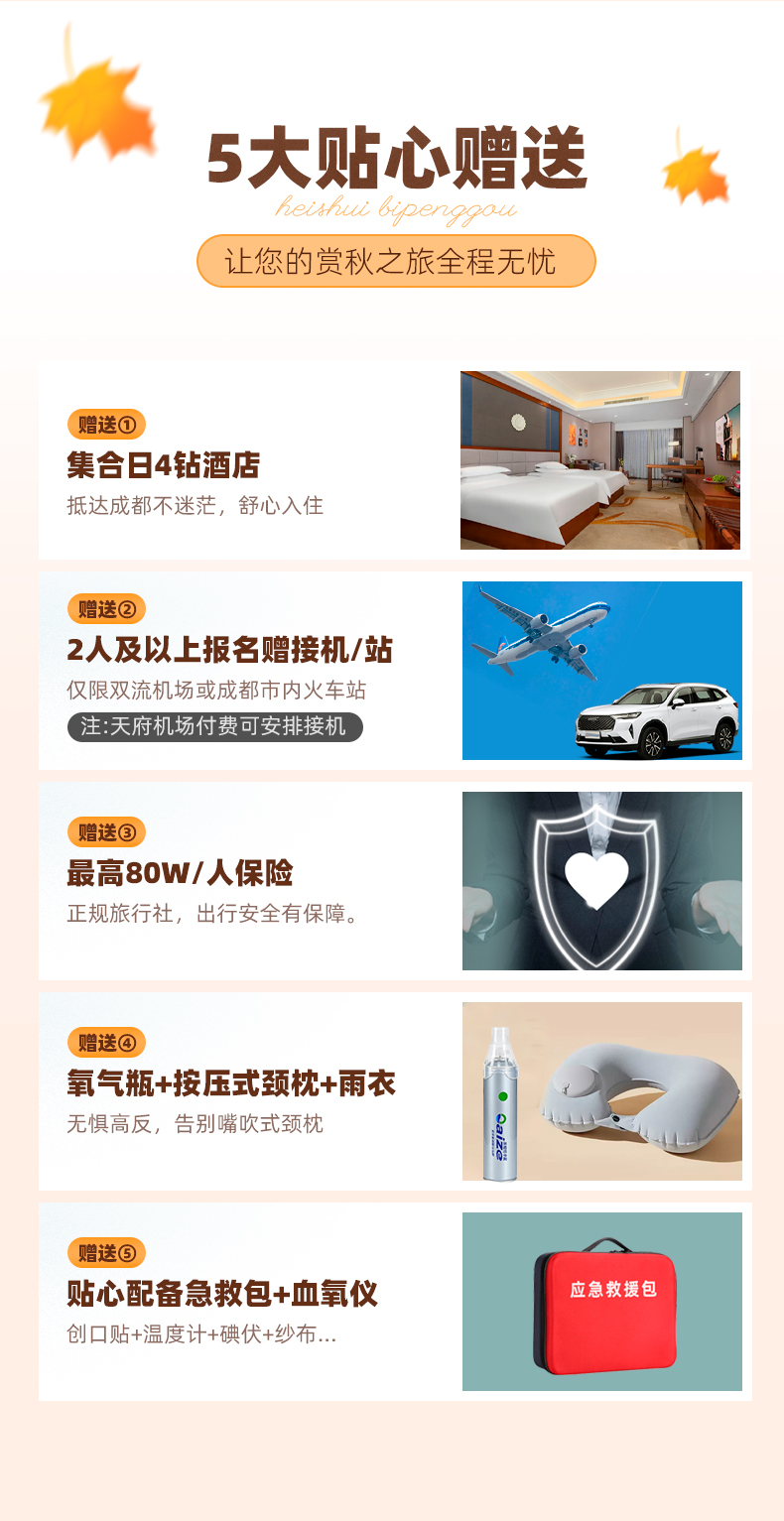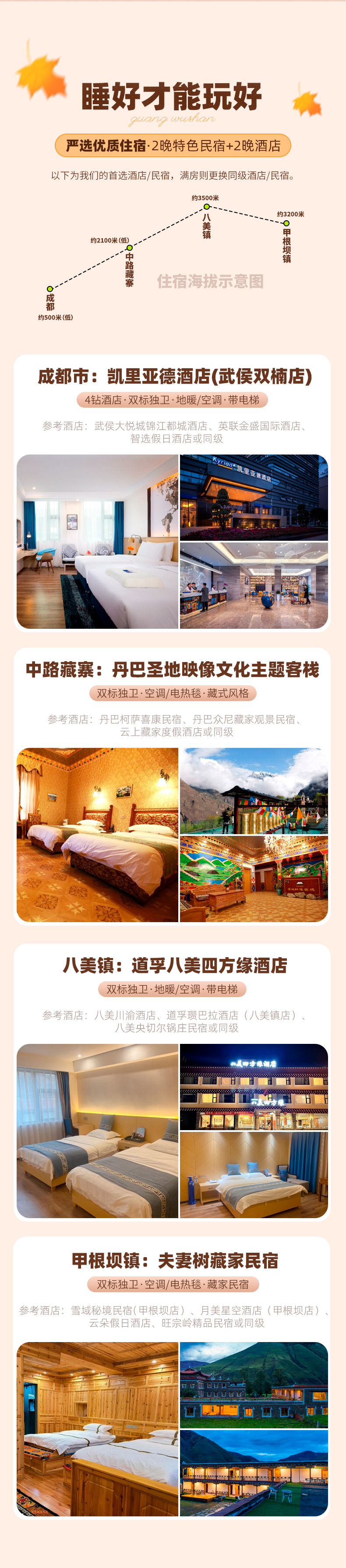 2、住宿:全程4晚标间住宿(成都升级1晚4钻酒店、集合日赠送酒店不住不退);