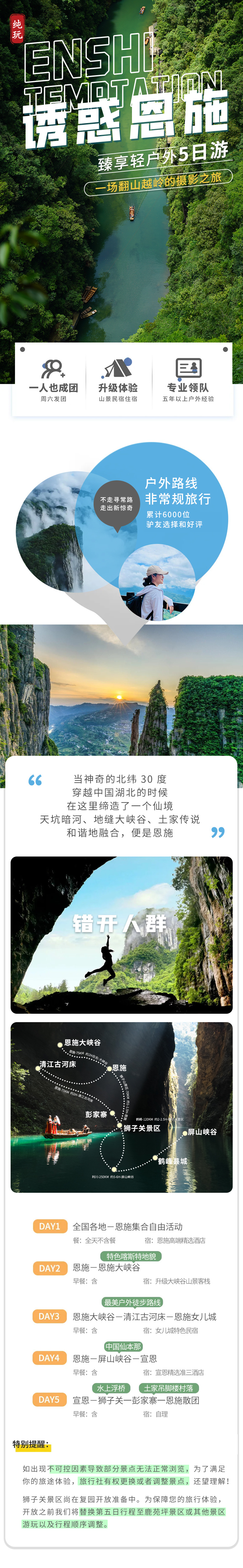 备用方案:如屏山峡谷景区遇天气原因或政府管制关闭的情况下,我们将行程调整至石门河景区,第四日酒店更改至:建始同级别酒店