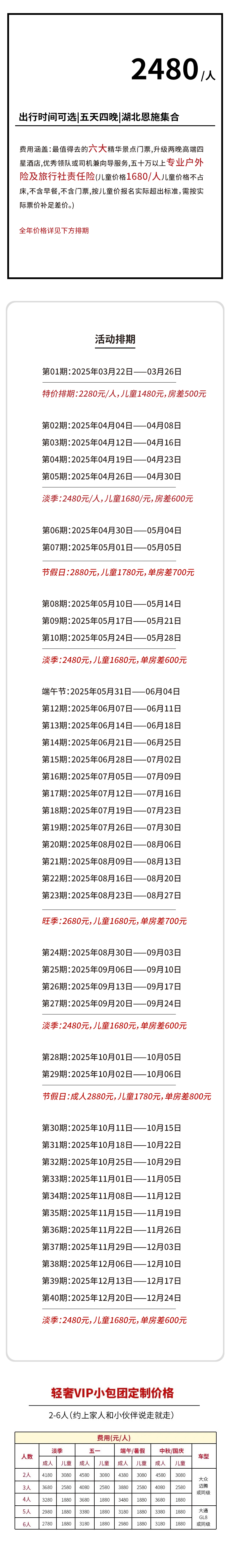 *以上行程仅供参考,最终行程可能会根据实际情况进行微调,敬请以出团通知为准。如狮子关景区暂未开放,我们将调整第五天行程,改为鹿苑坪游览。狮子关景区开放之后再恢复原行程。敬请谅解。