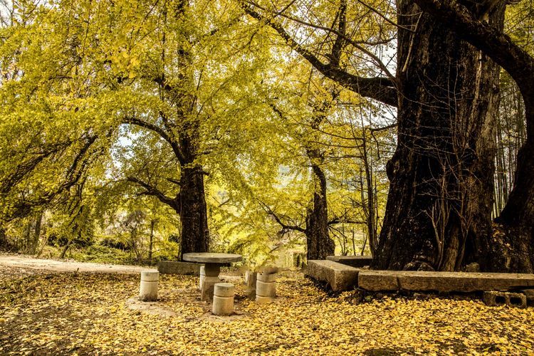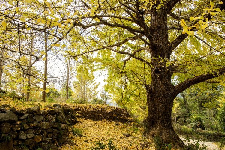 1、海洋乡银杏:这里银杏繁多,古木参天,深秋时节,颜色鲜艳美丽,是银杏不可多得的摄影圣地。