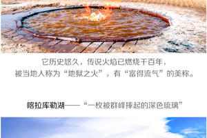 早餐后从库车出发,前往克孜利亚大峡谷景区,一路可见戈壁沙漠的独特风光,远处山脉连绵起伏,与蓝天相映成趣。抵达景区,红褐色的巨大山体在阳光照耀下,犹如大地的火焰,在大峡谷里的尽头,有一家最孤独的咖啡馆。这里没有招牌只高耸的台阶,这里没有喧嚣,只有千万年的丹霞沟壑陪伴着咖啡的浓香。远眺峡谷,手握温暖的咖啡,回味千年前班超三十六勇士开疆扩土的壮烈史诗。适时前往烈焰泉,其形成源于地下丰富的天然气资源和地质活动,水浇不灭火,火烧不干水。它历史悠久,传说火焰已燃烧千百年,被当地人称为“地狱之火”,有“富得流气”的美称。后前往酒店入住。