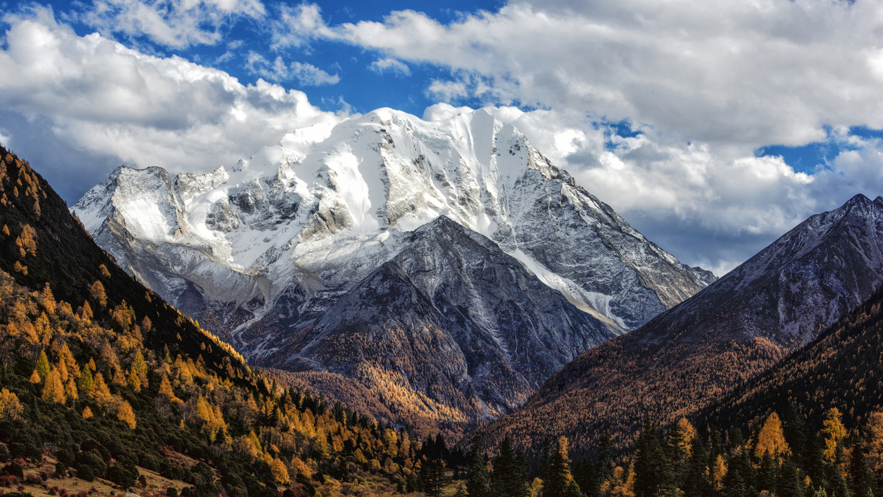 早餐过后开始前往四姑娘山双桥沟游览,途经小金县前往四姑娘山,大约2小时车程进入有“东方阿尔卑斯山” 之称的四姑娘山双挢沟拍摄艳丽的秋色。双挢沟之美,主要在于山之美,沿途林立的雪峰峭壁随着你移动的脚步不断地变幻着它们的身影,同一座山峰在不同的观赏位置和不同的光线下形成不同的画面,正所谓“横看成岭侧成峰,远近高低各不同”。双桥沟一年四季都可形成精彩的画面,冬日大地一片洁白,苍劲的沙棘树枝披上银色的盔甲,雪峰似利剑直刺青天;盛夏翠色欲滴,奇花遍野;而到了金秋,银峰峭壁下的莽林一片金黄,沟溪边、草坡上的灌木则像团团通红的火焰。游览完之后入住四姑娘山镇客栈