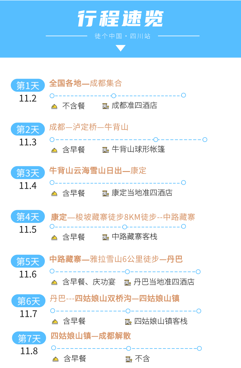 特别提醒:此行程为高原野外徒步线路,对身体素质有一定要求,队员最好有野外徒步经验,报名请仔细同客服人员沟通细节。进山后很多区域无移动通讯信号,提前安排工作和给亲人朋友报备进出山时间,建议返程或后续行程预留1天缓冲时间。活动过程中有可能因不可控因素折返或绕行或变更,涉及安全隐患的由主领队全权处理队伍配合。如产生超额费用需由队员自己承担,报名时默认队员已清楚“特别提醒”相关事宜。