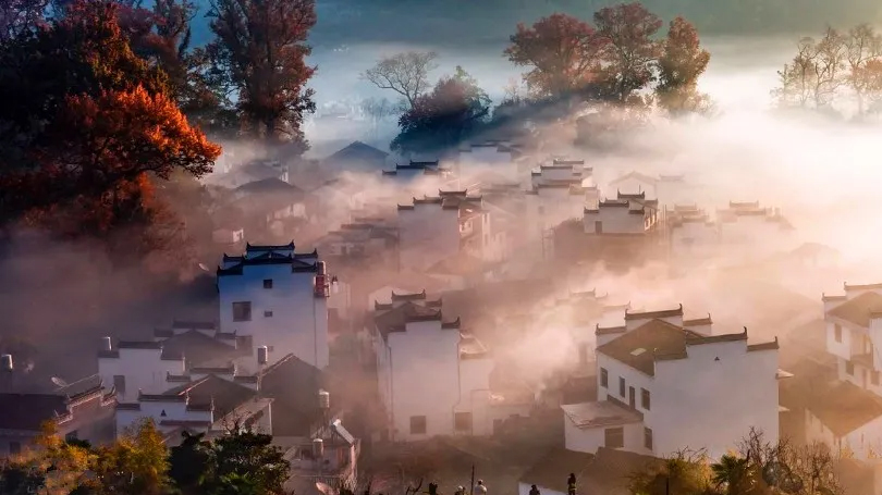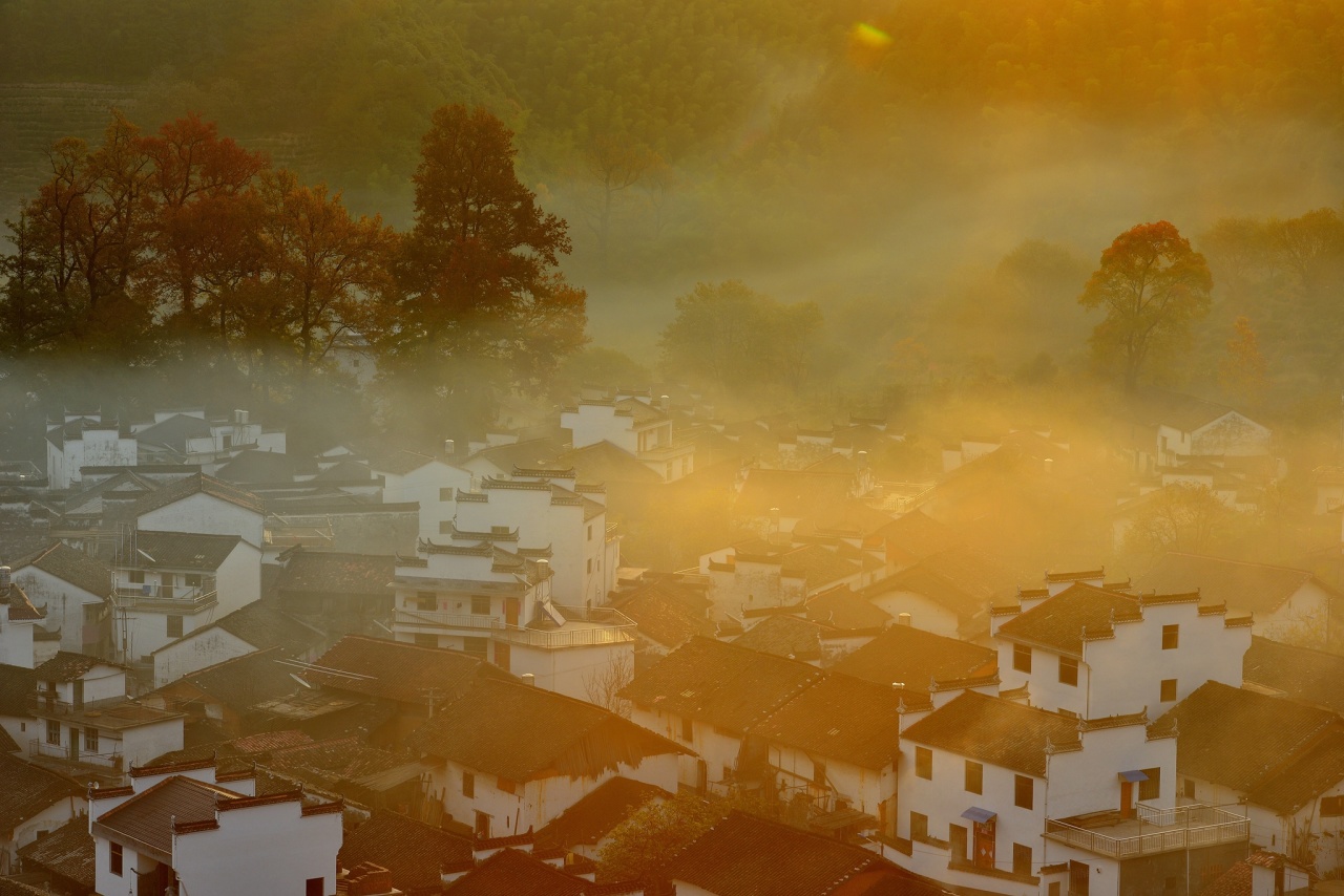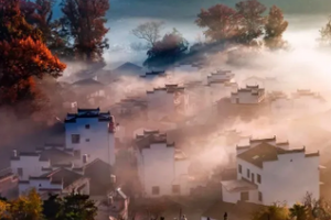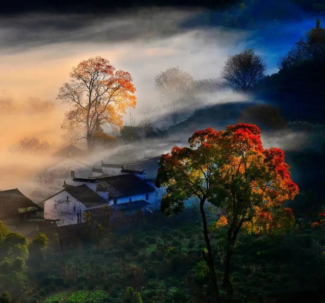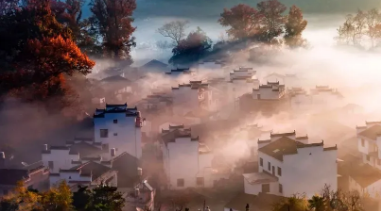 在江西婺源,有一处宛如梦幻仙境般的地方 —— 石城,这里,秋色如诗如画,每一个瞬间都仿佛是大自然精心雕琢的艺术杰作。清晨,石城被一层薄薄的雾气所笼罩,宛如人间仙境。炊烟袅袅升起,与雾气交织在一起,营造出一种神秘而宁静的氛围。古老的徽派建筑在雾气中若隐若现,白墙黑瓦,飞檐翘角,宛如一幅幅水墨画。此时,站在高处俯瞰石城,你会被眼前的美景所震撼。那如诗如画的景色,让人仿佛置身于童话世界中。