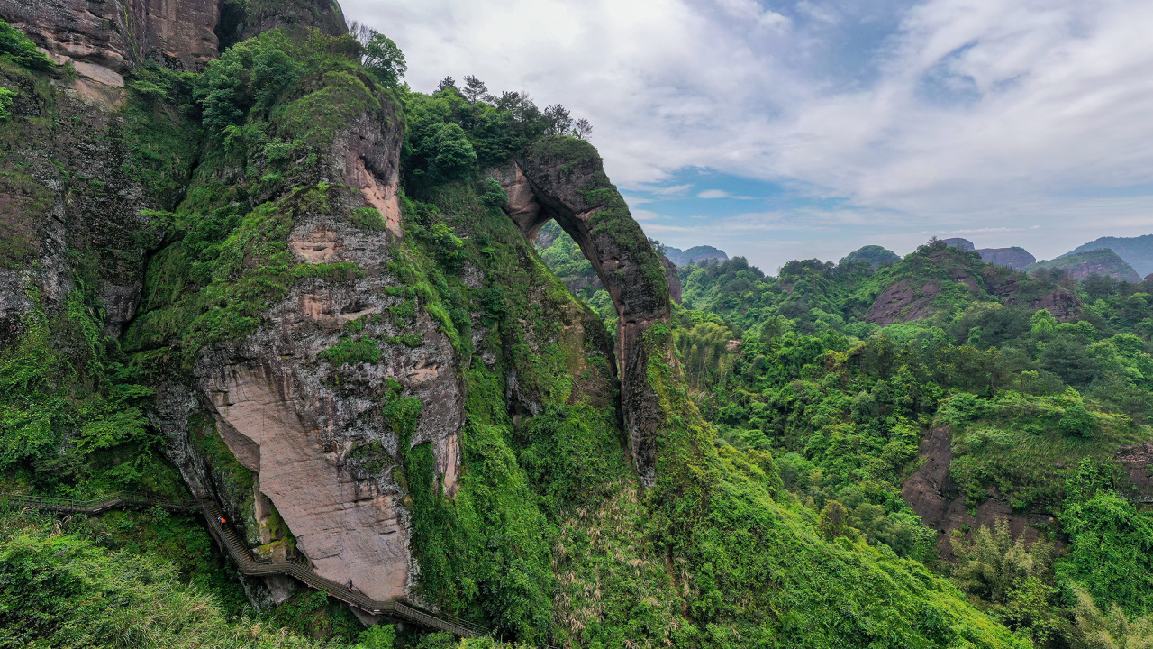 到达景区后购票进入景区,进入景区后沿着栈道徒步龙虎山象鼻山景区,【象鼻山】是长期受雨水冲刷溶蚀风化而脱落,造成崩塌残余型的石梁穿洞类景观。高约100米的山峰有一石梁凌空垂下,整个山体就像一只巨型石象在汲水。